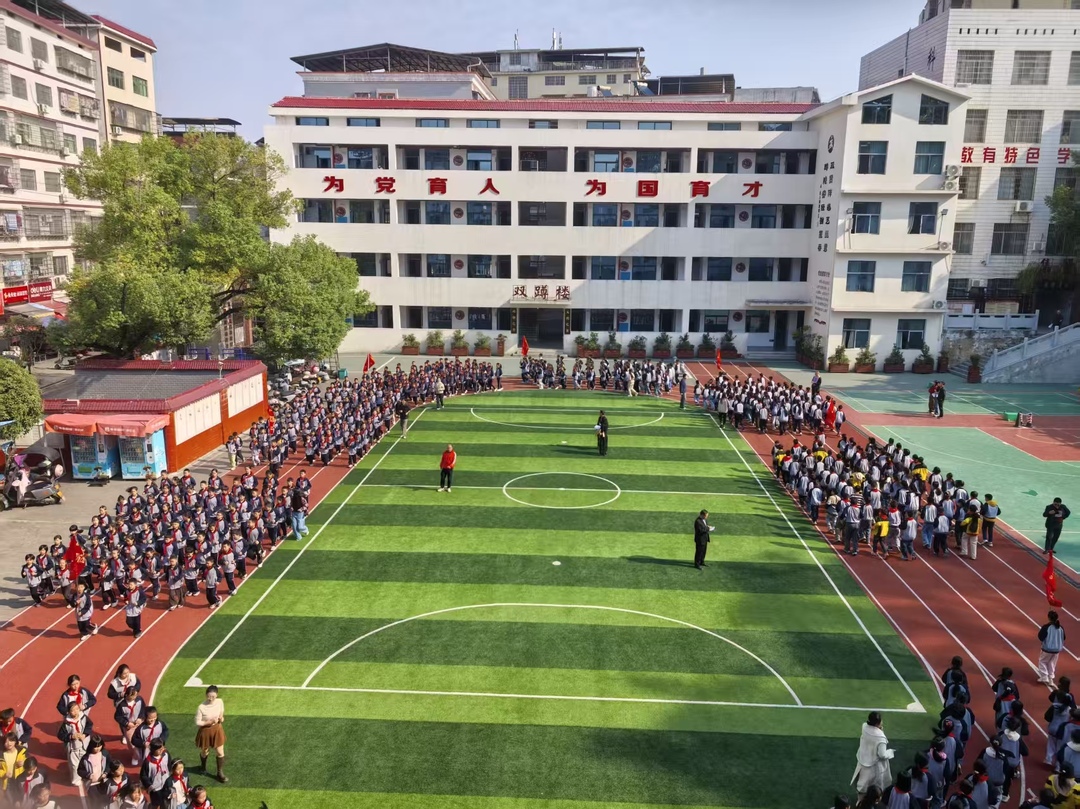 現(xiàn)場評委們從隊列的整齊度、動作的協(xié)調性、口號的震撼力以及整體的精神風貌等多個維度,對每個班級進行了嚴謹而公正的評判。最終,經過激烈的較量,四年級(6)班和(8)班贏得了評委的一致好評,雙雙摘得一等獎的桂冠,其他班級則分獲二、三等獎。