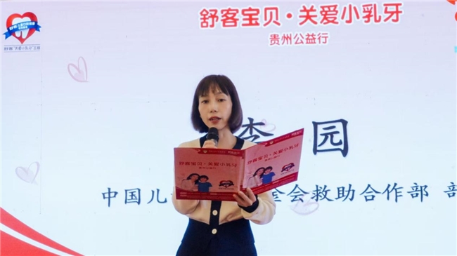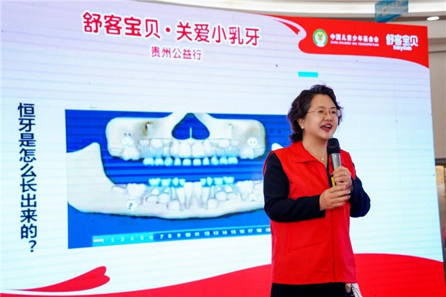 舒客寶貝貴州公益伙伴代表楊曉敏在發言中提到,近十年來我國兒童齲齒率呈上升趨勢,口腔健康狀況亟待改善。企業有責任積極行動,改善這一現狀。此次貴州公益行將以貴陽為起點,陸續深入社區與校園,推動科學護牙理念深入基層。