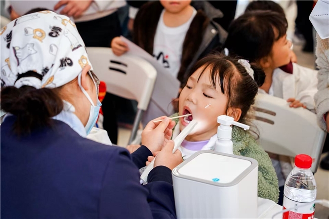 此外,活動現場還設有四大互動體驗區,包括免費口腔檢測區、口腔知識展示與繪本閱讀區、刷牙體驗區以及冠軍媽媽郭晶晶合照打卡區。孩子們在沉浸式互動中增強防齲意識,現場口腔醫生也為每位兒童提供免費檢測與個性化護理建議。活動還向2至12歲兒童捐贈了專業口腔護理“愛牙包”,幫助孩子們建立日常護齒習慣。