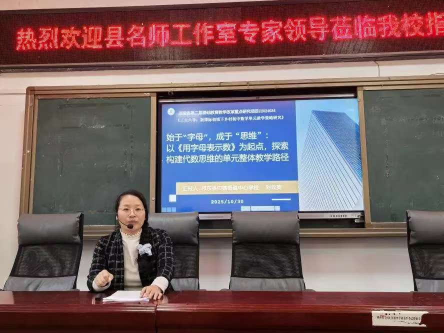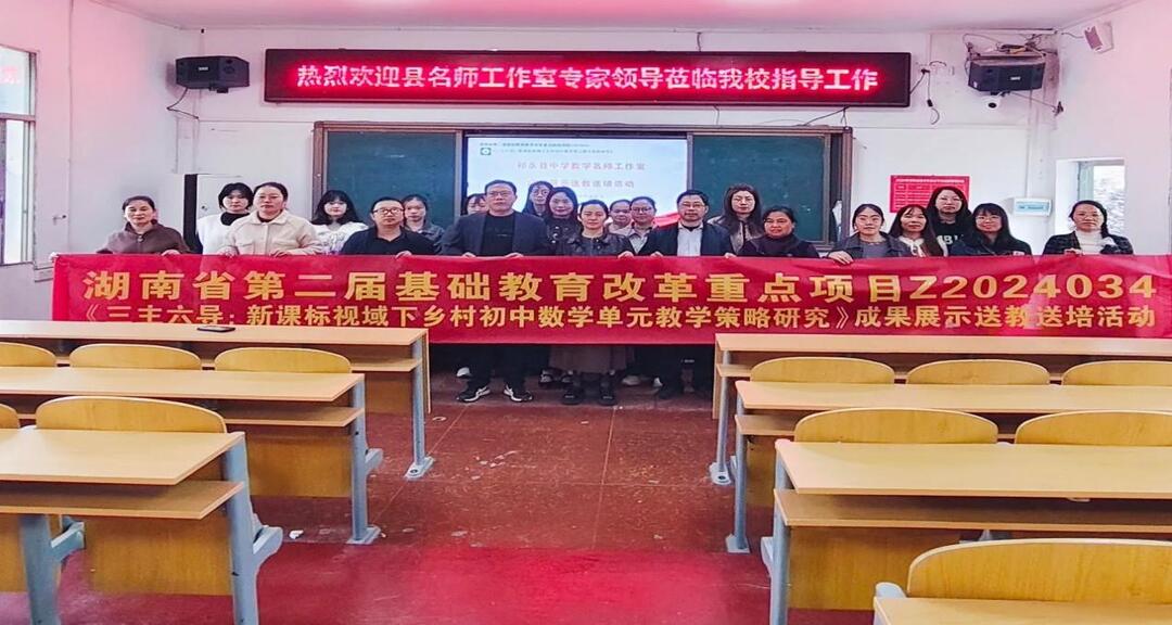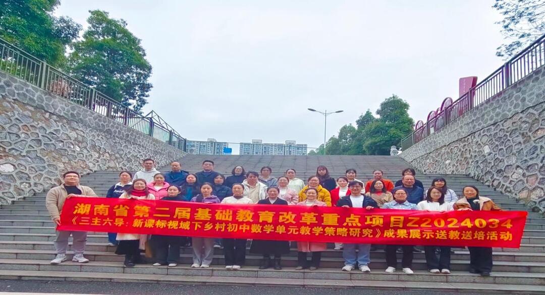 金秋送教傳薪火,教研賦能共成長。為深化新課標理念下初中數學單元整體教學改革,搭建校際教學交流橋梁,促進優質教學經驗互鑒共融,湖南省第二屆基礎教育教學改革項目組Z2024034聯動祁東縣中學數學名師工作室,先后于10月29日赴黃土鋪鎮中心學校、11月11日赴祁東縣成章中學開展"新課標視域下鄉村初中數學單元整體教學"專題送教送培活動,為兩所學校的數學教學注入鮮活動力,凝聚起教學改革的協同奮進力量。