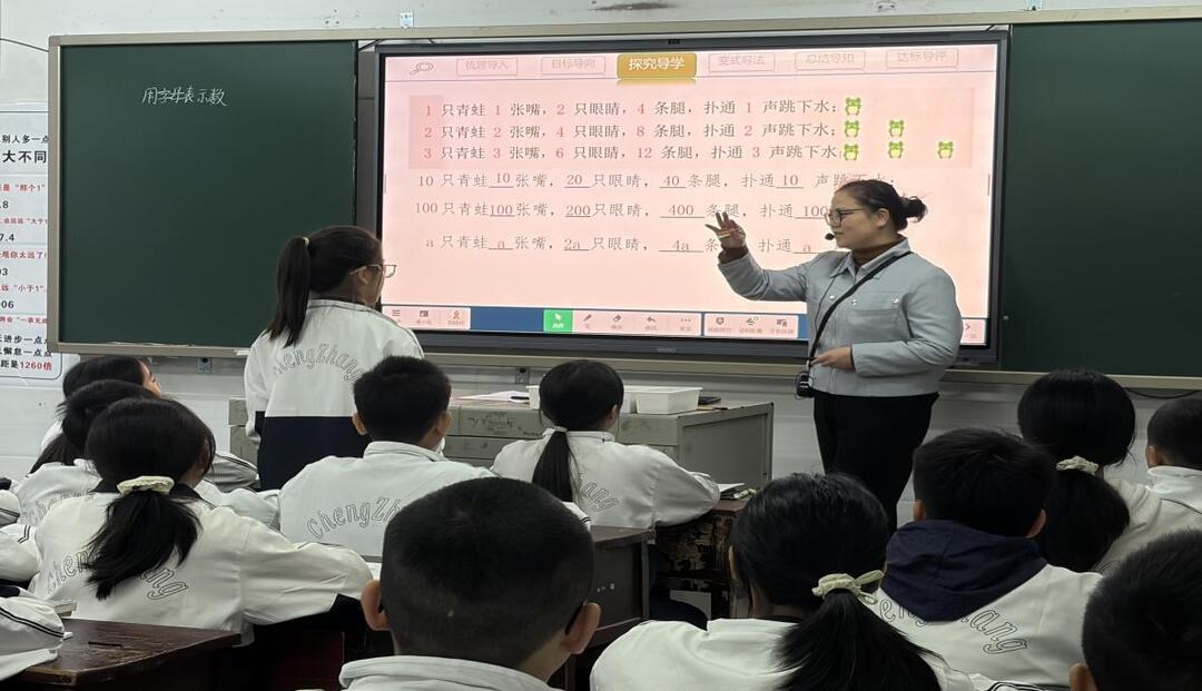 劉曉玲老師的《用字母表示數》單元起始課,以"小北的數學困惑"生活情境串聯課堂,巧妙融入AI技術鏈接日常學習場景。從具體數量表示到抽象字母概括,層層遞進引導學生感知代數思維,實現知識的情境化、具象化呈現,為兩校學生開啟單元學習筑牢思維基礎,課堂氛圍生動且富有深度。