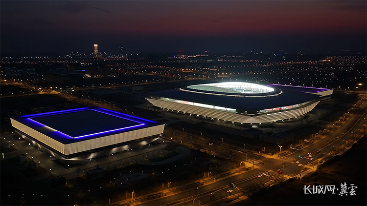 雄安體育中心夜景航拍。馬寧 攝
