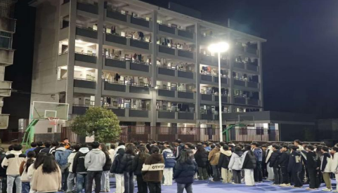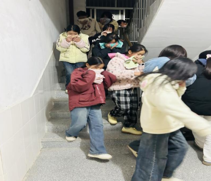 緊張有序,高效撤離。2025年11月18日晚上8:50,隨著急促的警報聲響起,全體師生立即進入應急狀態。學生用濕毛巾捂住口鼻,彎腰低姿沿預定路線撤離,教師引導員在各樓層關鍵位置指揮疏導,確保通道暢通。