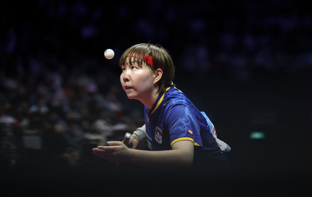 11月16日,澳門隊選手朱雨玲在比賽中發(fā)球。新華社記者 陳斌 攝