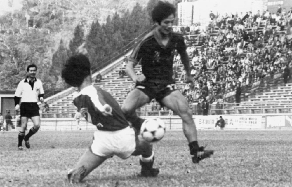 1984年元旦,第六屆省港杯足球賽第一回合比賽在香港政府大球場舉行,廣東隊以1:0取勝。圖為廣東隊古廣明帶球突破對方后衛(wèi)。新華社記者 黃本強 攝