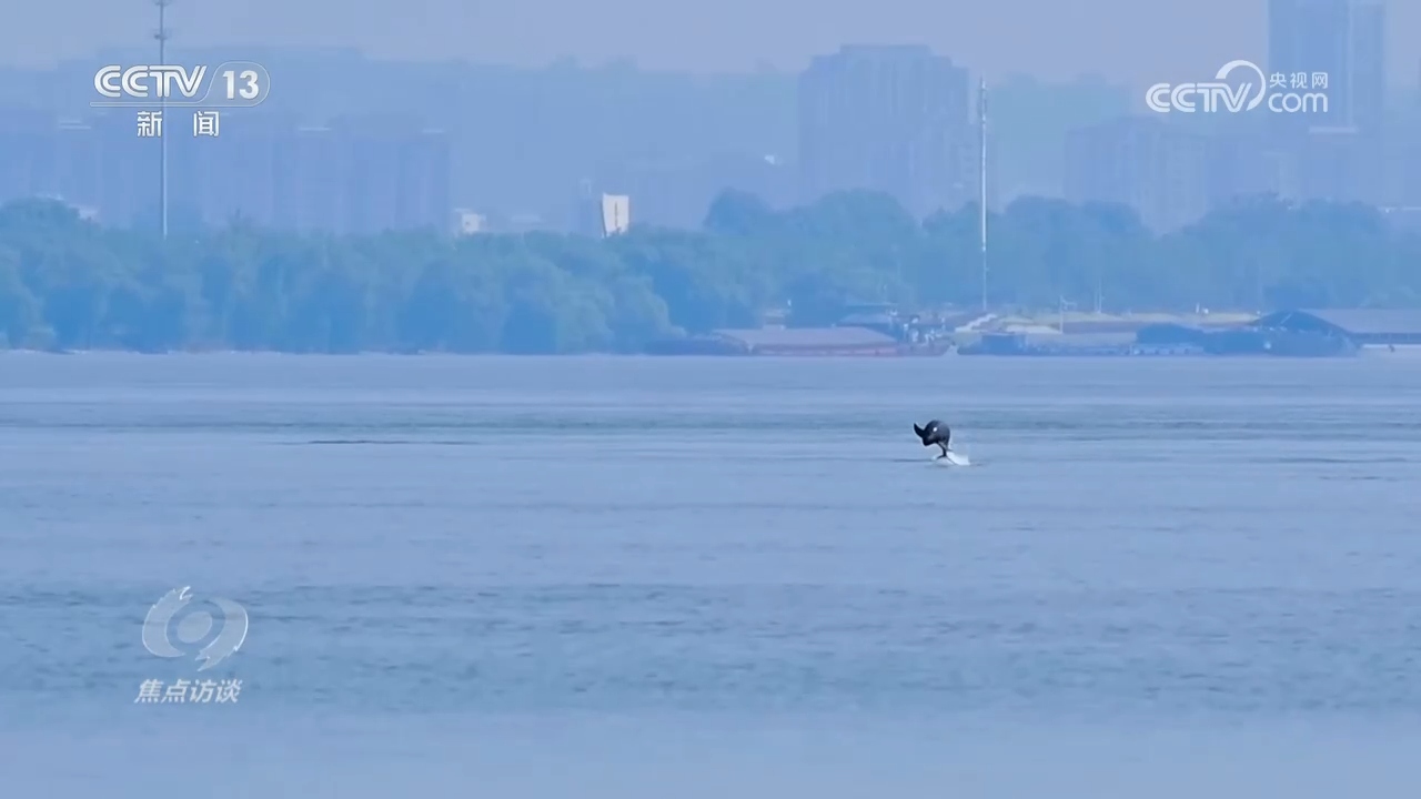 梅志剛:“我們做監測的時候發現整個區域里沒有單獨活動的江豚,它們都形成了大群,都在河口、洲頭洲尾,(第一次野化放歸的江豚)都找到了自己的‘飯搭子’‘生活搭子’,它適應非常好。”