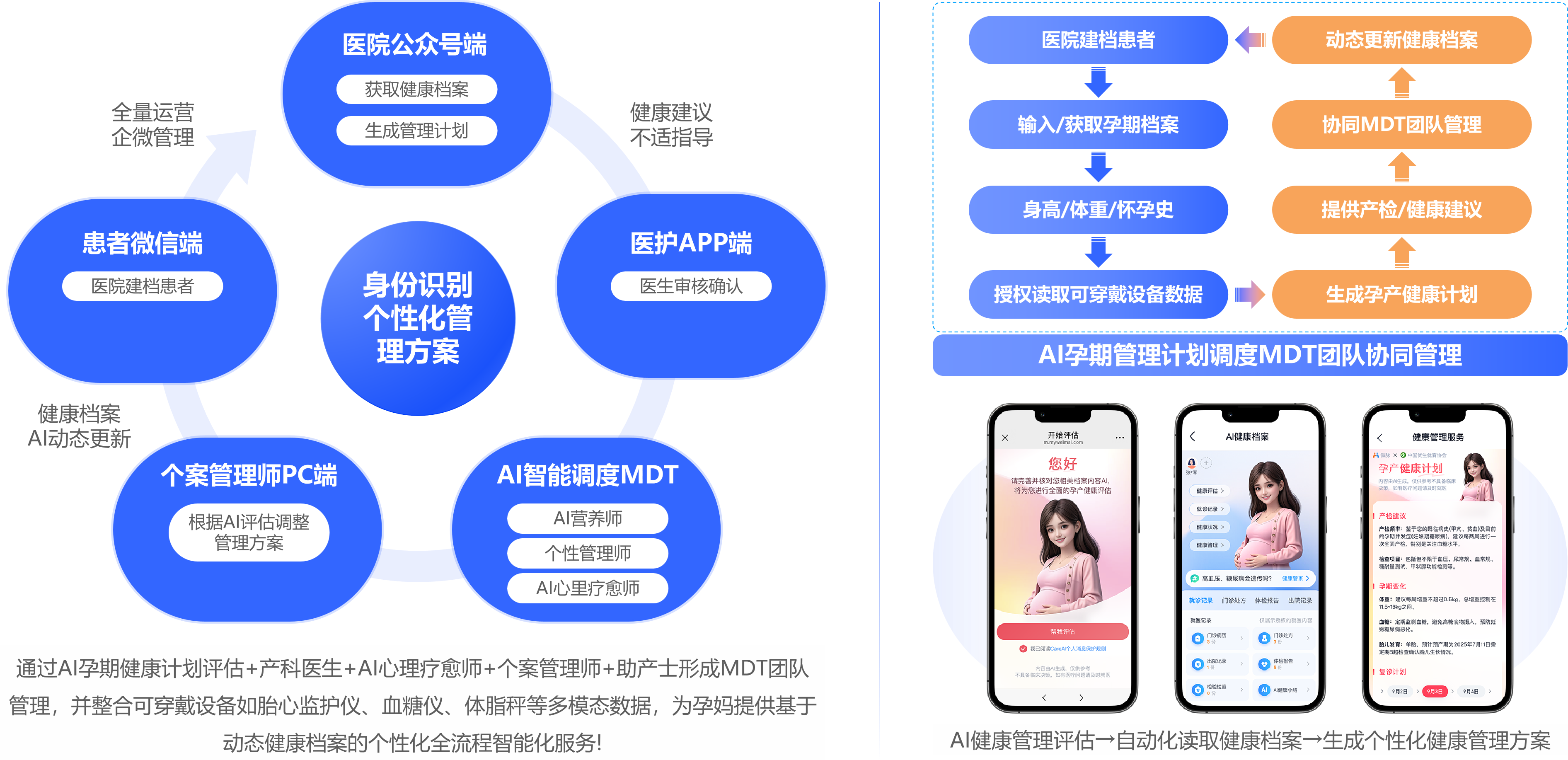 在院外管理環(huán)節(jié),未來(lái),“小紅AI”將通過(guò)醫(yī)院公眾號(hào)端自動(dòng)化讀取患者健康檔案,生成個(gè)性化的健康管理方案,并與醫(yī)生審核及MDT(AI營(yíng)養(yǎng)師、個(gè)案管理師、醫(yī)生、AI心理療愈師等)協(xié)作機(jī)制相結(jié)合,形成連續(xù)性、閉環(huán)式的健康管理服務(wù)。