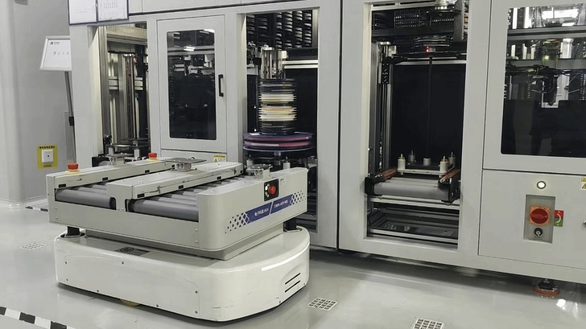 AGV機器人在智能備料倉自動調配料件(央廣網記者 韓雨晨 攝)